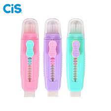 Borracha retrátil para apagar com vassourinha para não sujar o papel. <3