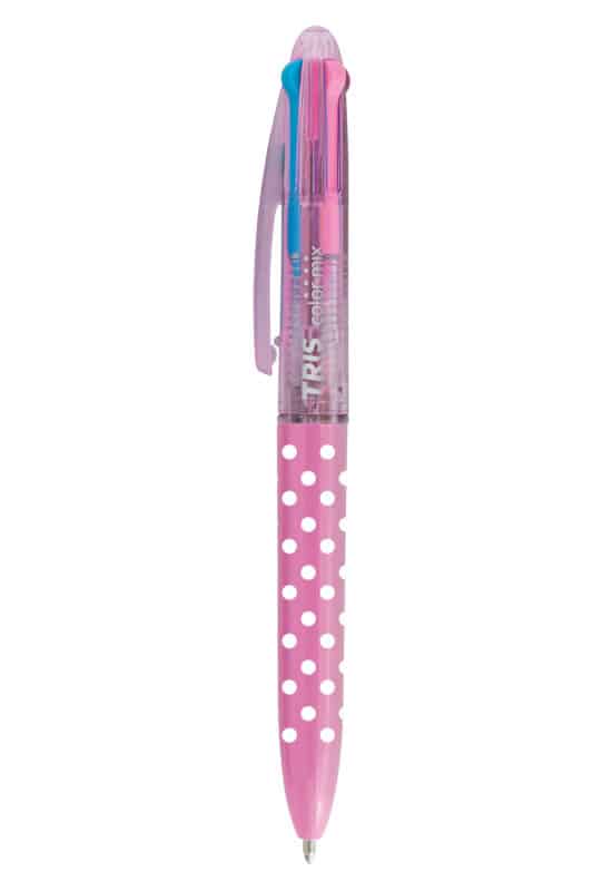 caneta Color Mix Petit Poá tem toda a praticidade da color mix: 4 cores na mesma caneta, escrita super macia e cores marcantes. Além disso, esta versão petit poá possui corpo estampado! Cores da tinta: azul clássico, azul claro, rosa e roxo.