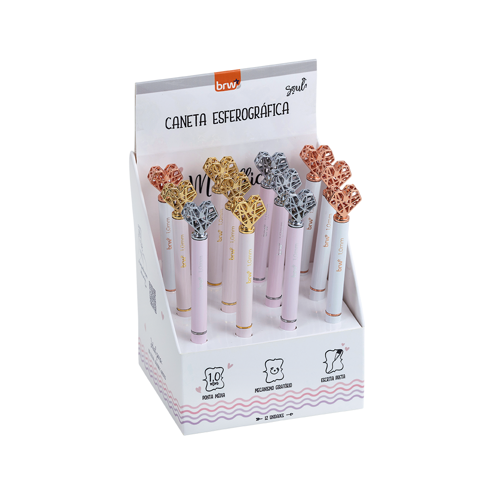 Um toque de elegância e amor na sua escrita! A Caneta Esferográfica Metálica Coração é perfeita para quem adora papelaria charmosa e cheia de estilo. Com acabamento metálico e um detalhe fofo de coração no topo, ela é ideal para presentear ou deixar sua mesa mais linda!