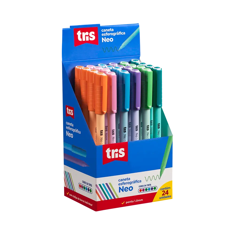 A caneta Neo é esferográfica, com secagem rápida e ponta média 1.0mm. São 6 cores incríveis de corpo e tinta para escolher, corpo com toque aveludado: textura soft touch.