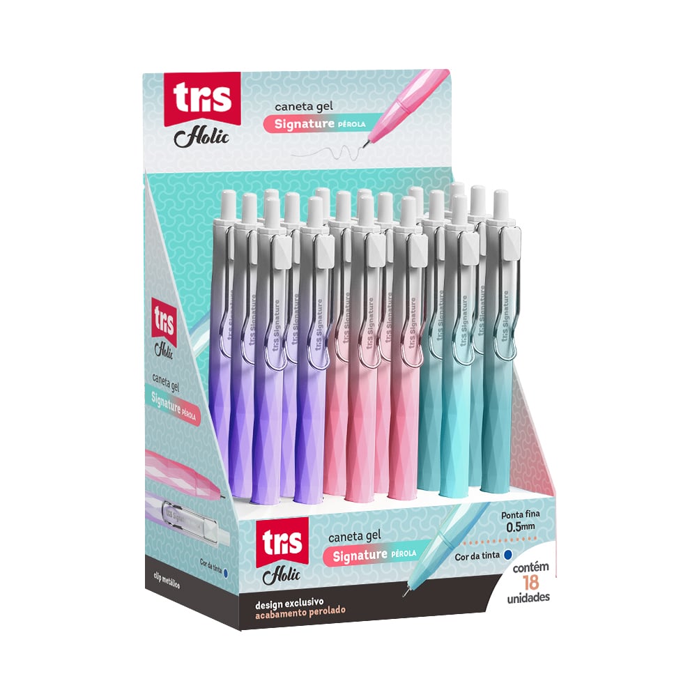 Com design elegante e cores clássicas, a linha Holic Fancy é perfeita para quem busca unir estilo e funcionalidade. A caneta Signature Pérola possui tinta azul, ponta fina de 0.5mm para uma escrita precisa e um clip metálico que combina praticidade e charme. Seu corpo com efeito perolado é um detalhe irresistível para o dia a dia.