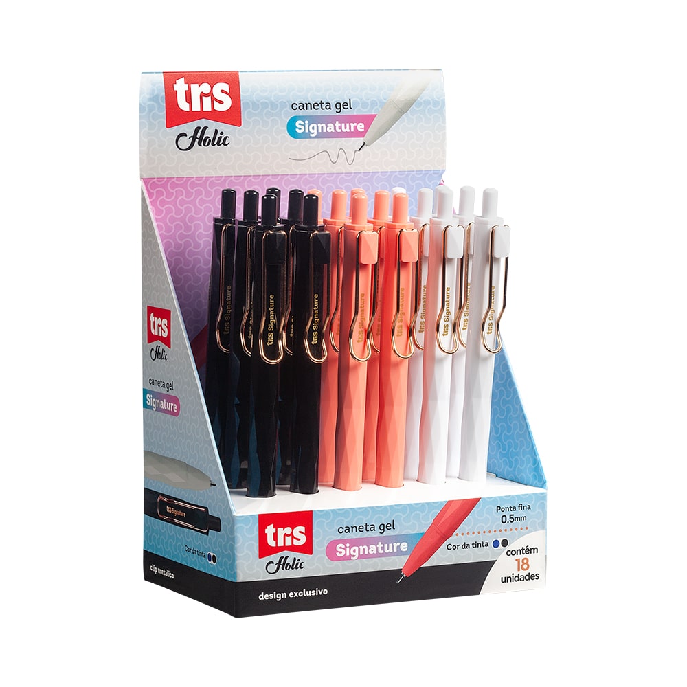 linha Holic Fancy combina cores clássicas e elegantes que nunca saem de moda. A caneta Signature é ideal para quem busca praticidade e estilo no dia a dia. Com ponta fina de 0.5mm, tinta azul e clip metálico, ela garante uma escrita precisa e cheia de charme.