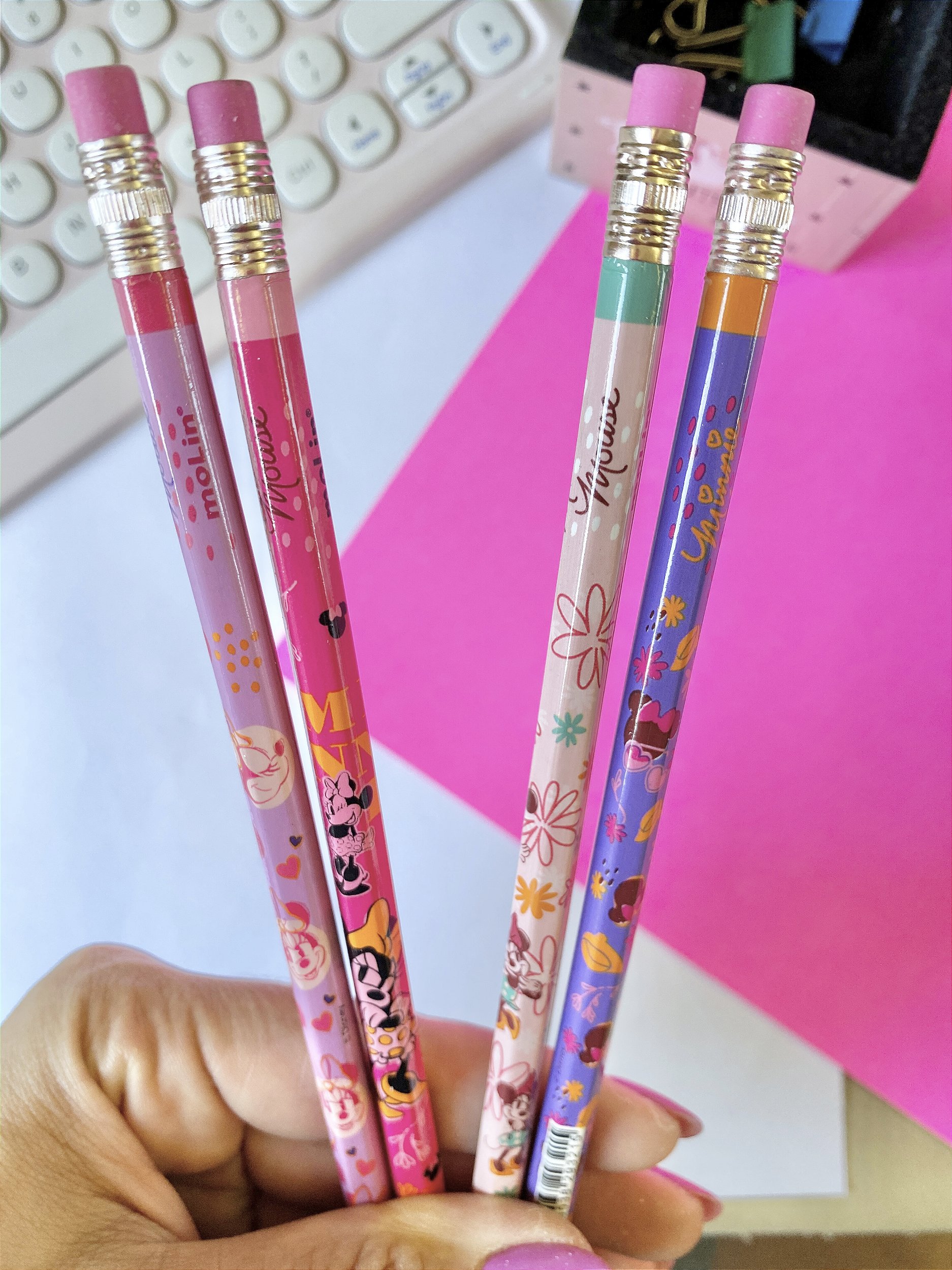 Dê um toque de magia e diversão ao seu material escolar com o Lápis Minnie! Com um design adorável inspirado na icônica Minnie Mouse, este lápis transforma cada anotação em um momento encantador. Seu visual vibrante e o famoso laço da Minnie garantem que ele se destaque entre os outros. Perfeito para quem ama a Minnie, este lápis é ideal para escrever, desenhar e criar com muito estilo. Adicione um pouco de fofura e alegria aos seus estudos com o Lápis Minnie, e deixe a magia começar!
