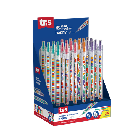 Com estampas diferenciadas, a lapiseira Happy vem para alegrar sua rotina de estudos! Possui traço 0.7mm e borracha com capa protetora!