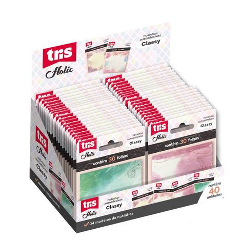 Com cores e estampas clássicas, mas que nunca saem de moda, a linha Holic Fancy veio para trazer mais estilo e elegância para o seu trabalho ou estudo. As notas autoadesivas Classy possuem 4 modelos de notinhas elegantes e translúcidas,com 30 folhas cada. Cada notinha tem dimensão de 73x73mm.